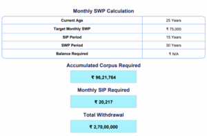3. Step-Up SWP-யின் பயன்: இந்த முறையில், உங்கள் மாதாந்திர வருமானம் வருடந்தோறும் உயரும். உதாரணமாக, ஆரம்பத்தில் ₹26,422 எடுத்தால், 20 ஆண்டுகள் கழித்து (70 வயதில்) அது ₹79,942-ஆக உயர்ந்திருக்கும். இதனால், உங்கள் வாங்கும் சக்தி முழுமையாகப் பாதுகாக்கப்படுகிறது.