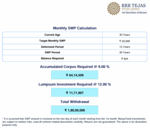 ஒருவர் 30 வயதில் ₹11.7 லட்சம் முதலீடு செய்தால், 45 வயதிலிருந்து தொடங்கி, அடுத்த 30 ஆண்டுகள் வரை ஓய்வூதிய வருமானமாக மாதம் ₹50,000 SWP மூலம் பெற முடியும்